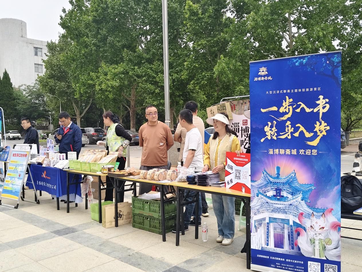 2025年5月7日,济南大学文化和旅游学院“逐光”青年志愿者协会联合淄博淄川区文旅局,在舜耕校区经管楼前广场成功举办“文旅IP进校园”主题活动。本次活动通过周到的志愿服务与文旅资源展示的深度融合,创新性开展高校文旅推广实践。