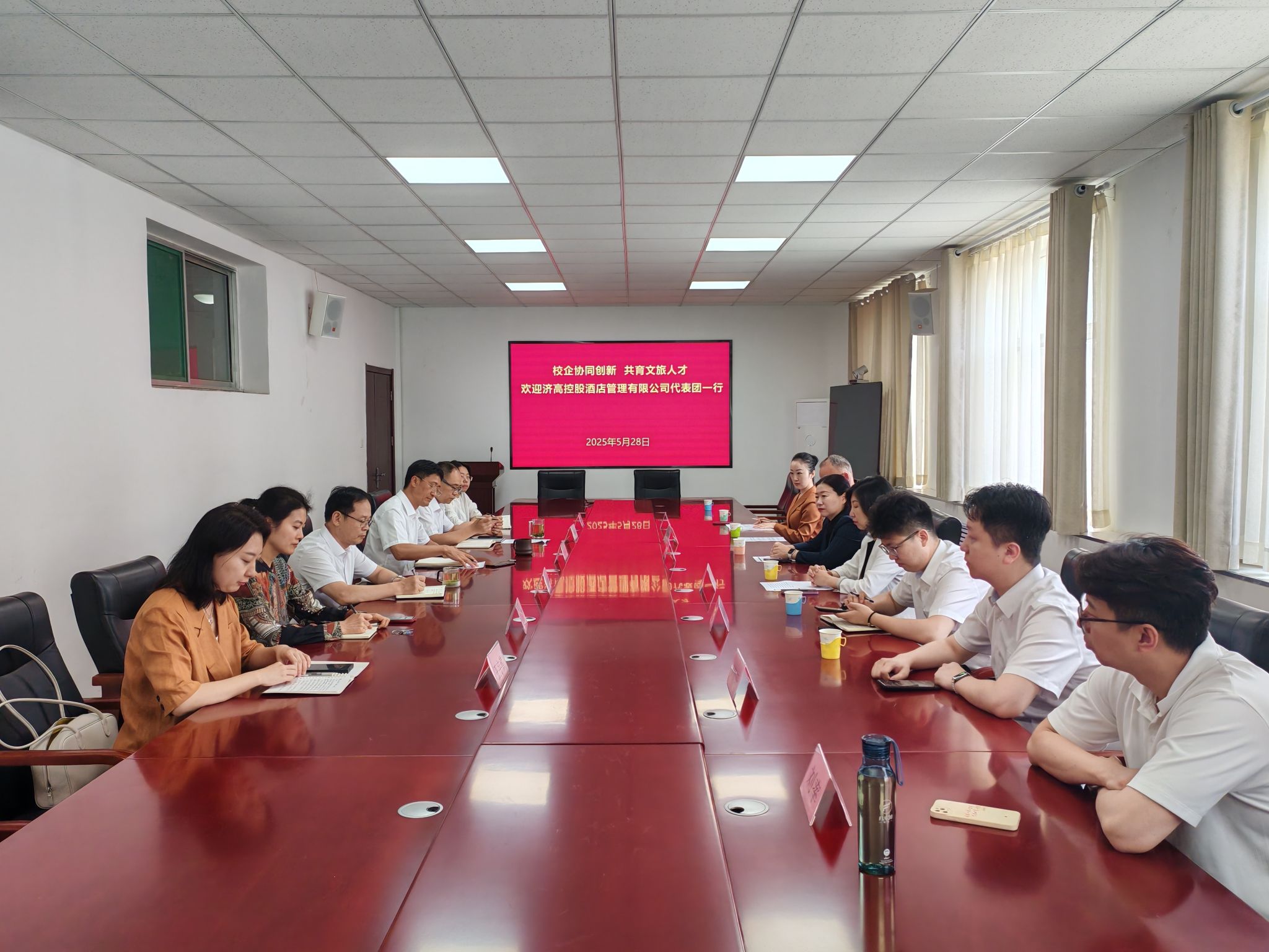 孟德洋对济高控股酒管公司一行的到访表示热烈欢迎,并详细介绍了学院在专业建设、人才培养模式、科研创新、实习就业等方面取得的成果。他强调,学院一直致力于培养具有扎实专业知识、创新能力和实践经验的文旅人才,通过不断优化课程体系、加强实践教学,为学生搭建通往行业的桥梁。此次双方的合作交流,既是对“产教融合、协同育人”理念的践行,更是对文旅产业高质量发展新路径的积极探索。