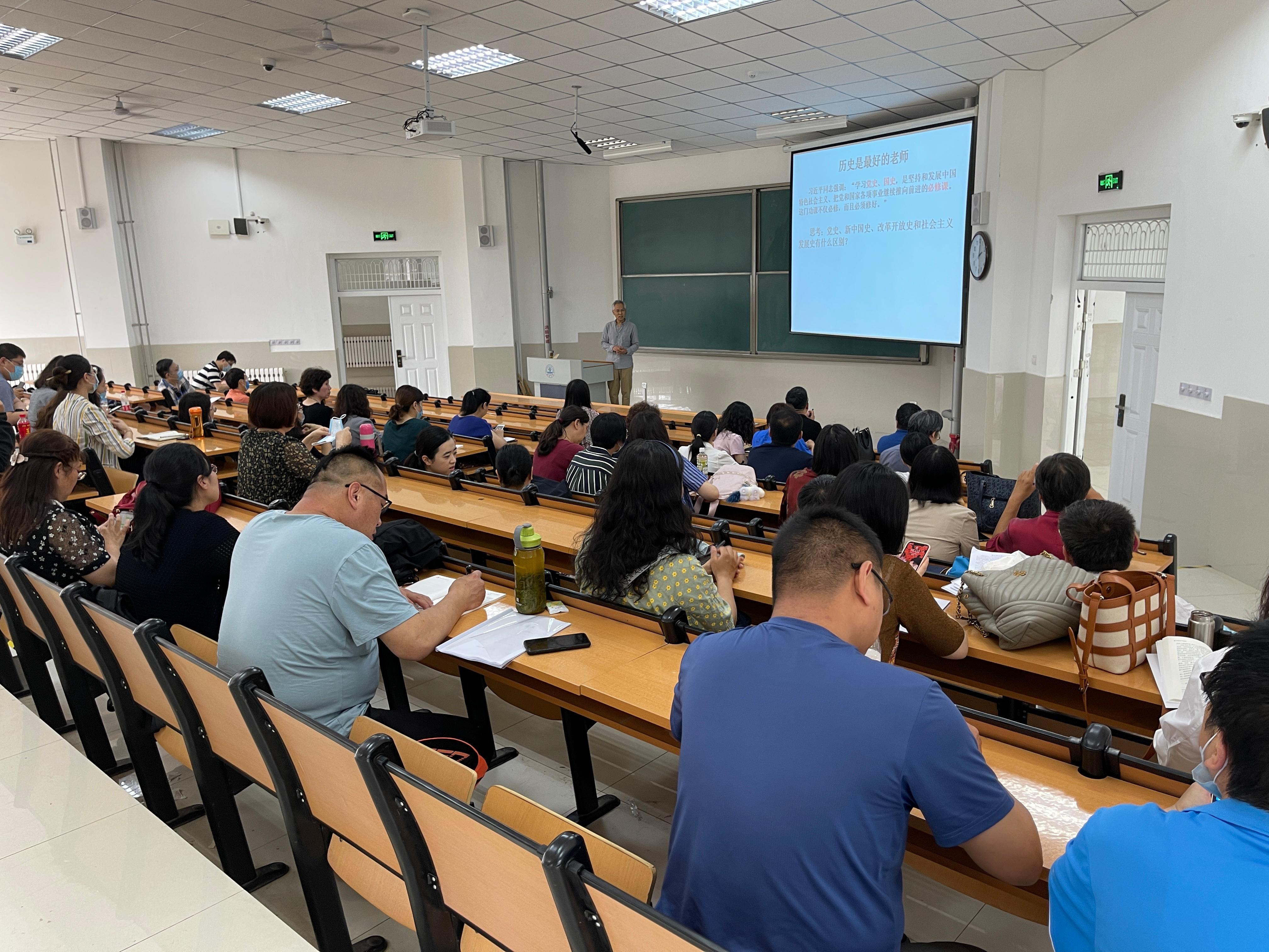为深入贯彻落实习近平总书记在中共中央关于开展党史学习教育动员大会上的重要讲话精神,进一步牢记初心使命,坚定理想信念,激发担当作为,Beat365唯一官方网站根据学校党史学习教育工作的总体要求,落实“七个一”活动具体安排,于6月1日在舜耕校区第三教学楼101教室组织开展党史学习专题党课活动。党课由学院党委副书记孙成政主持,历史系主任高臻主讲,学院教工党员全员参加。