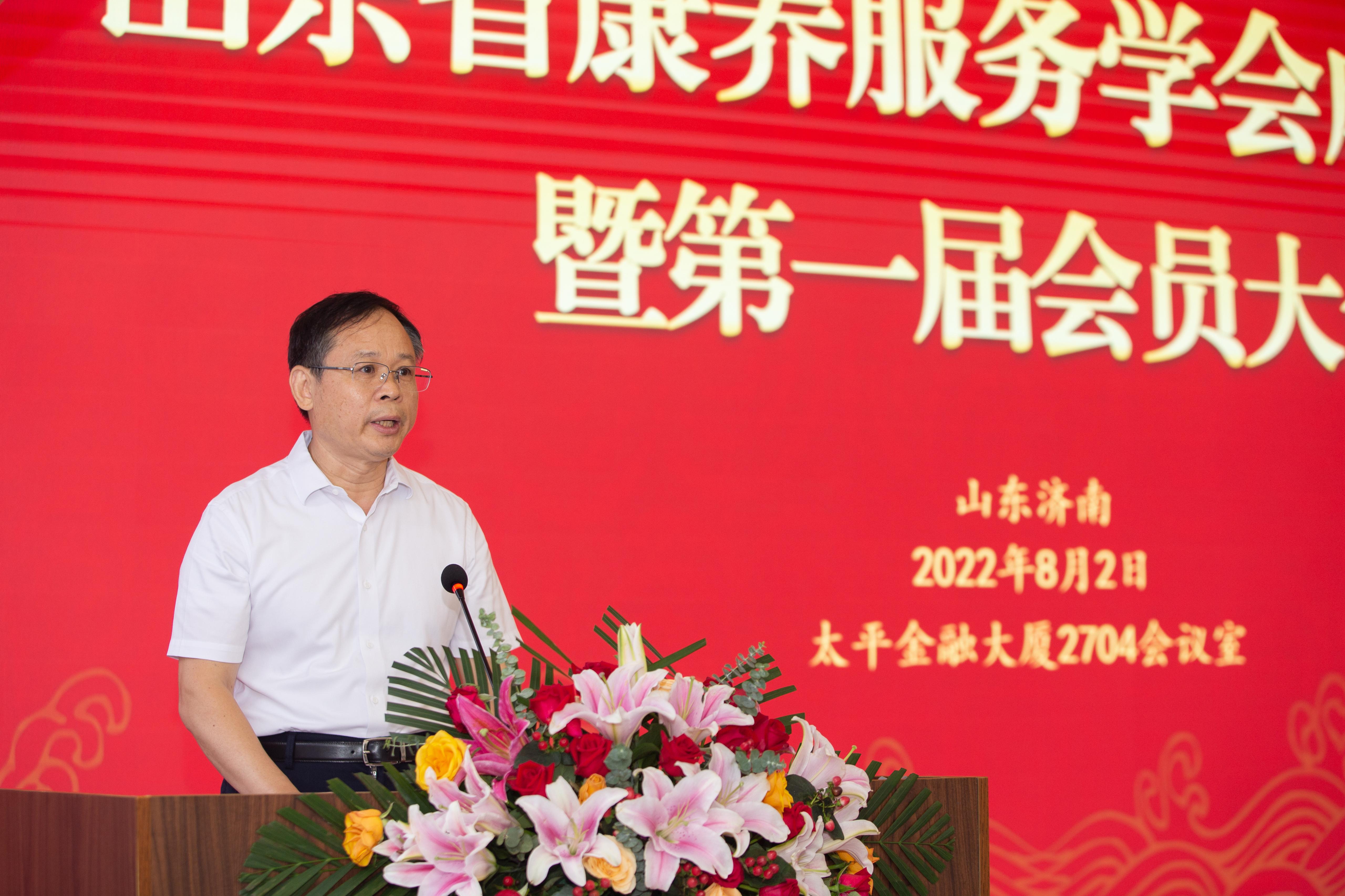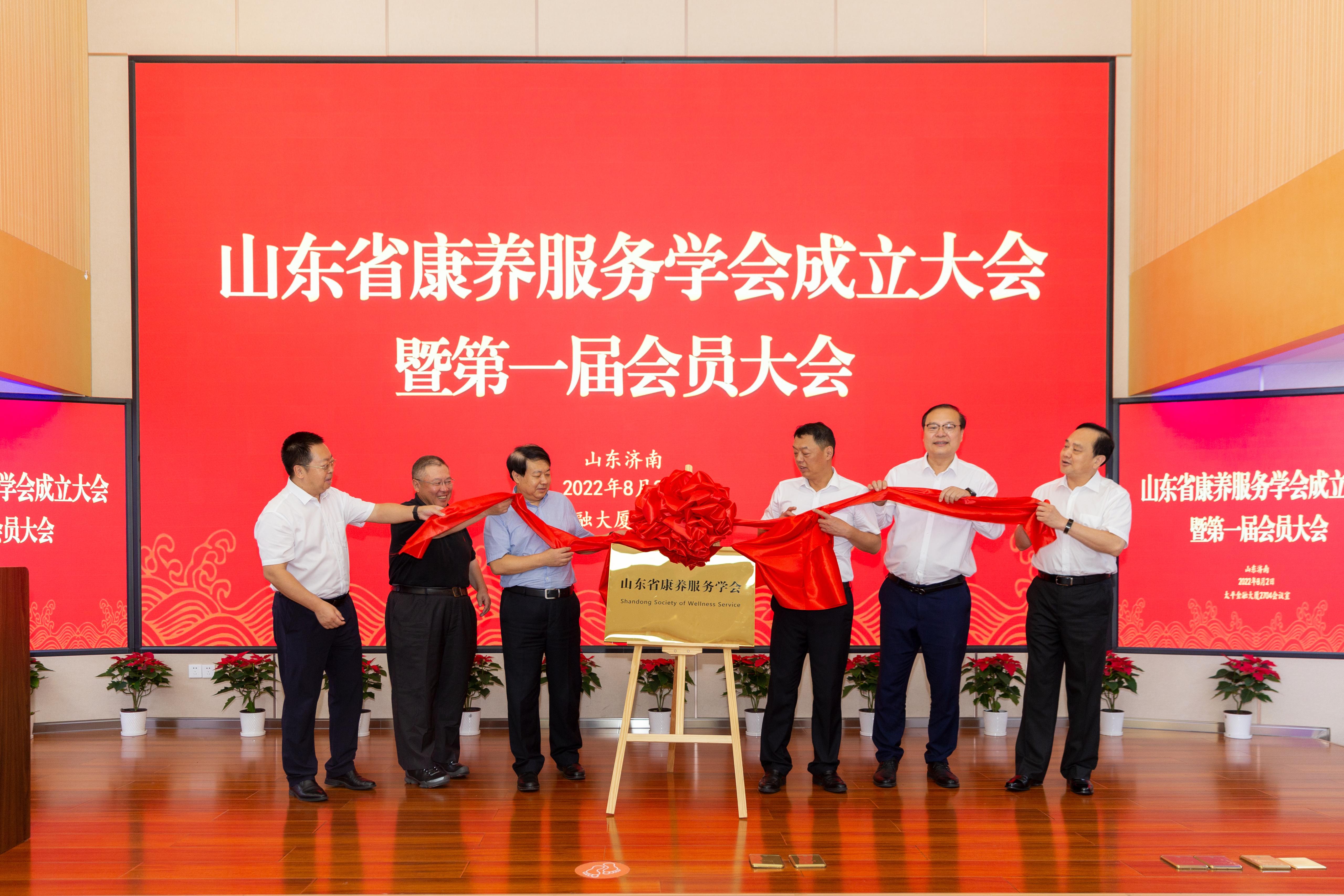 成立大会上,山东省社会科学界联合会党组书记、副主席刘致福、中国国际贸易促进委员会山东省委员会党组书记、会长孟向东、山东省民政厅副厅长张志毅、济南大学校长刘宗明、山东省政协常委、经济委员会副主任孙秀江、太平养老保险股份有限公司山东分公司党委书记、总经理孙辉共同为山东省康养服务学会揭牌。