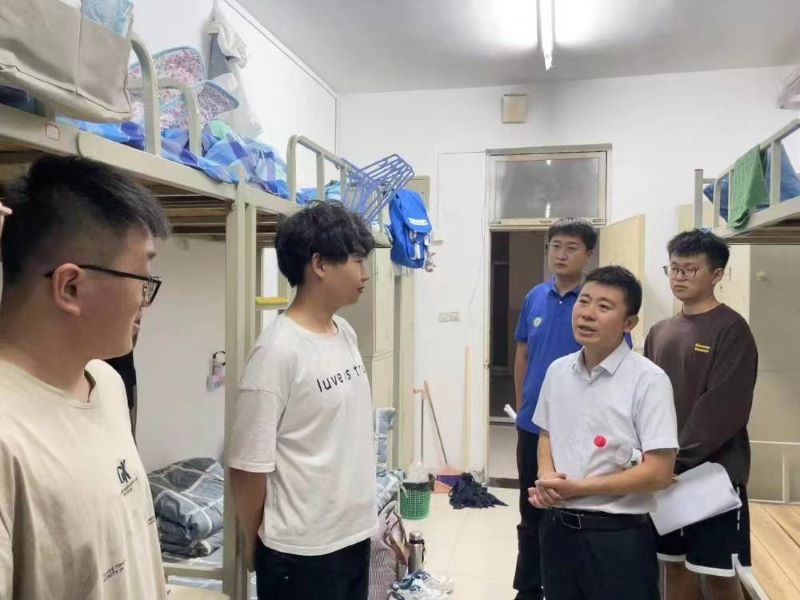 为深入了解Beat365官网2022级新生到校后的住宿和生活情况,帮助同学们尽快适应新生活、新环境,9月20日,学院党委书记孟德洋、党委副书记王磊带领辅导员走访新生宿舍,为新生送去学院的温暖与关怀。