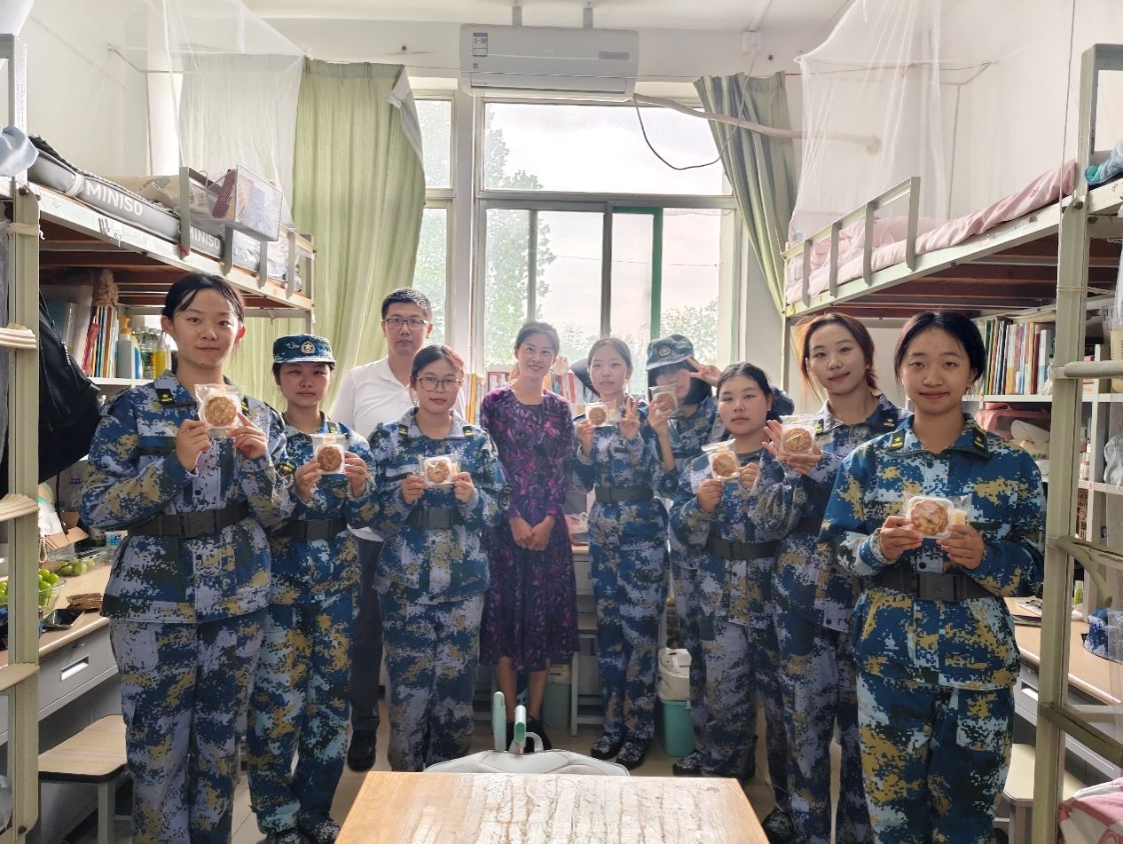 学院党委副书记、副院长信苏珊,2024级新生辅导员吕龙飞,深入宿舍、军训训练场与2024级新生共庆团圆,为新生送上学校定制的中秋月饼,并送上温馨的中秋祝福和学院关怀。信苏珊在走访宿舍时与新生们亲切交谈,询问他们入校以来的适应情况、军训感受及未来规划,鼓励他们珍惜大学时光,勇于探索,全面发展。同时,她还耐心解答了新生们关于学习、生活等方面的疑问,让初入校园的新生们感受到了家一般的温馨与呵护。