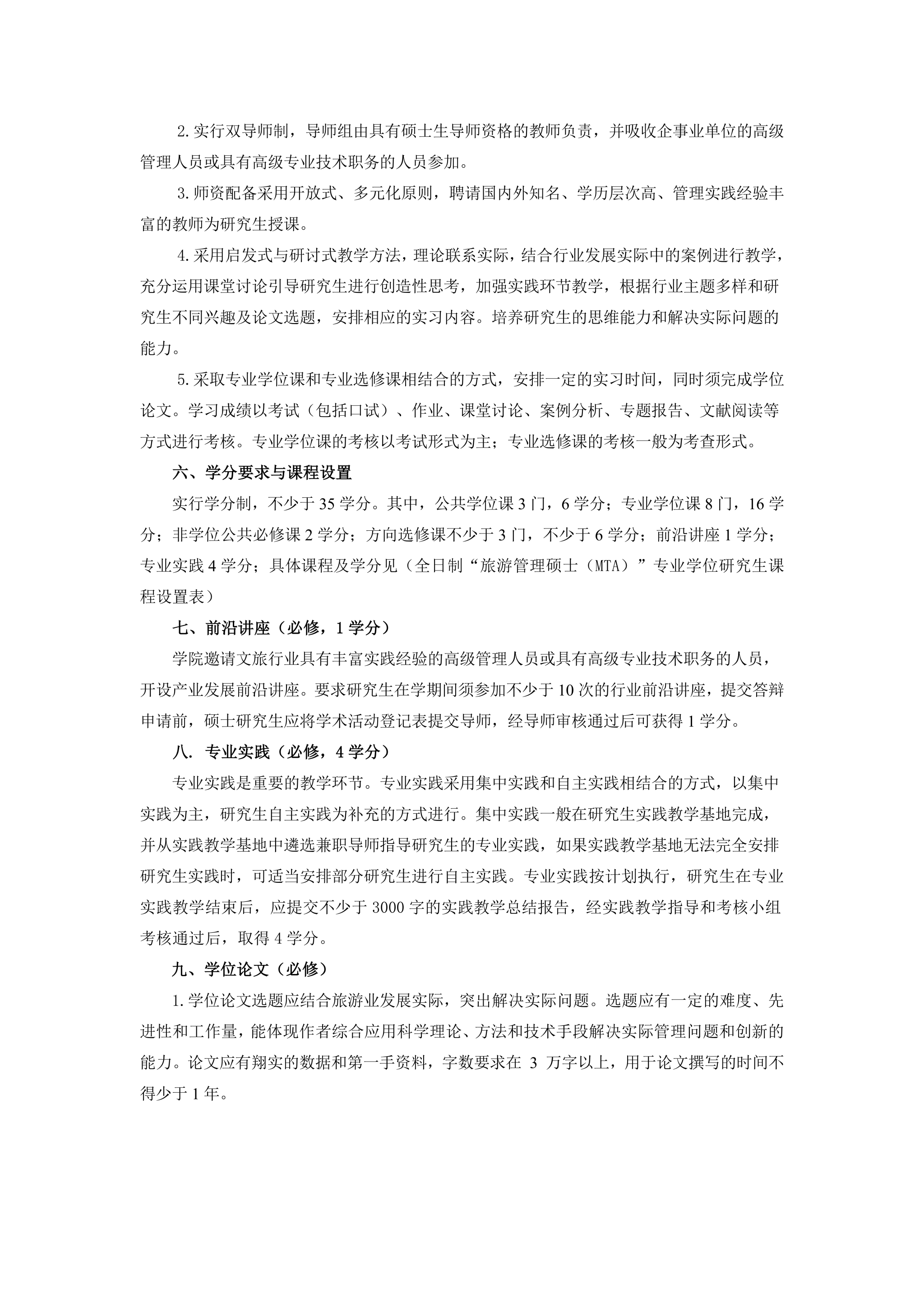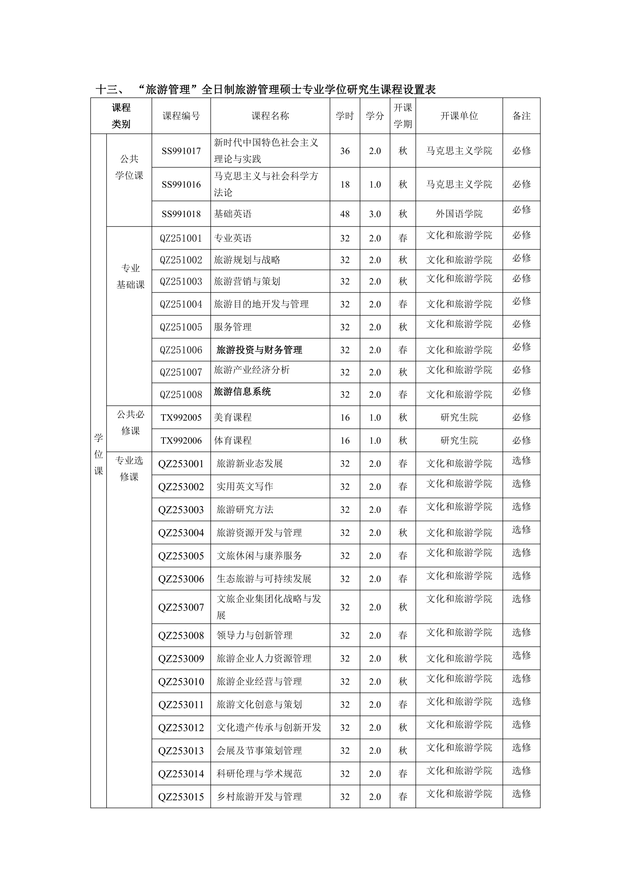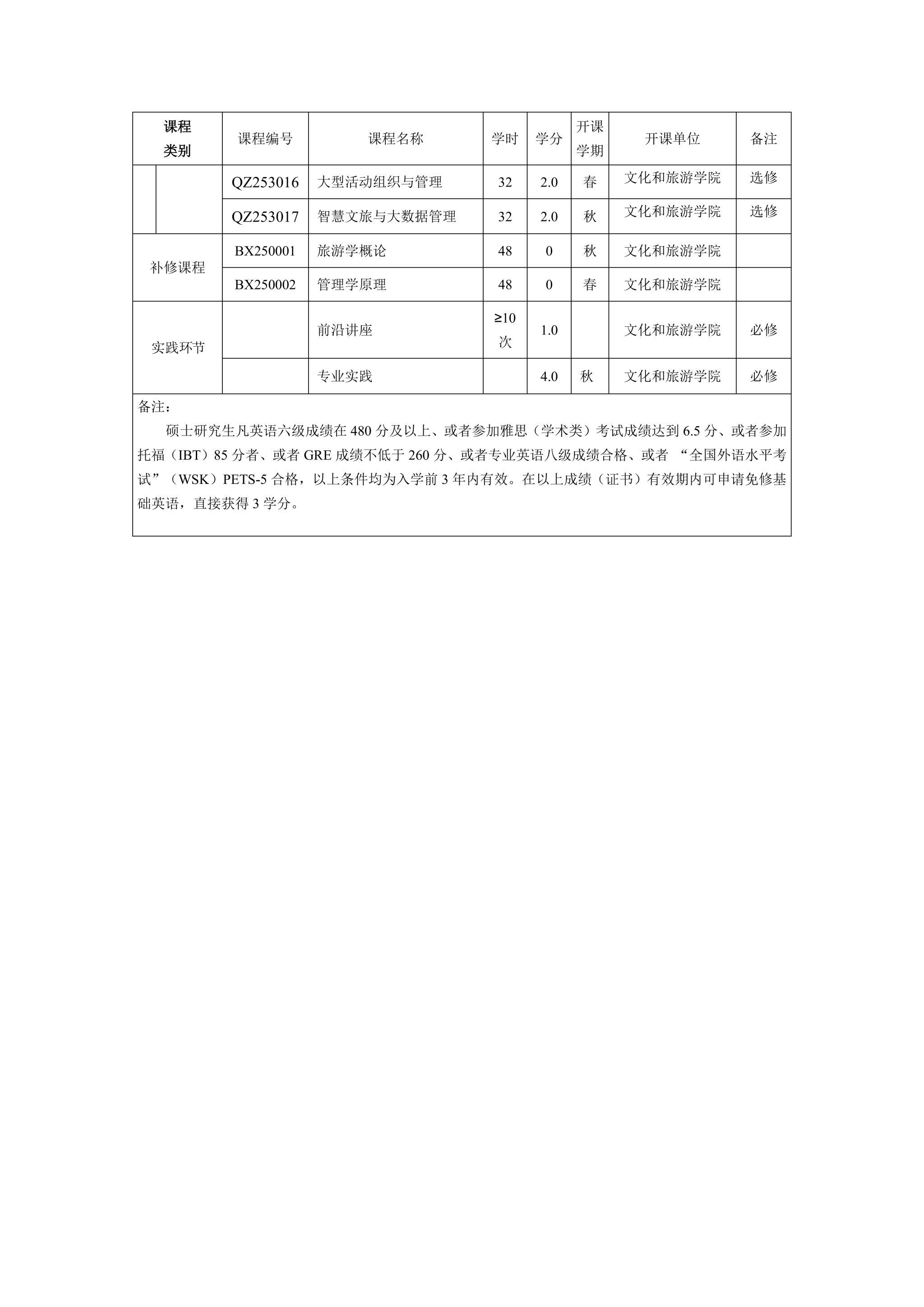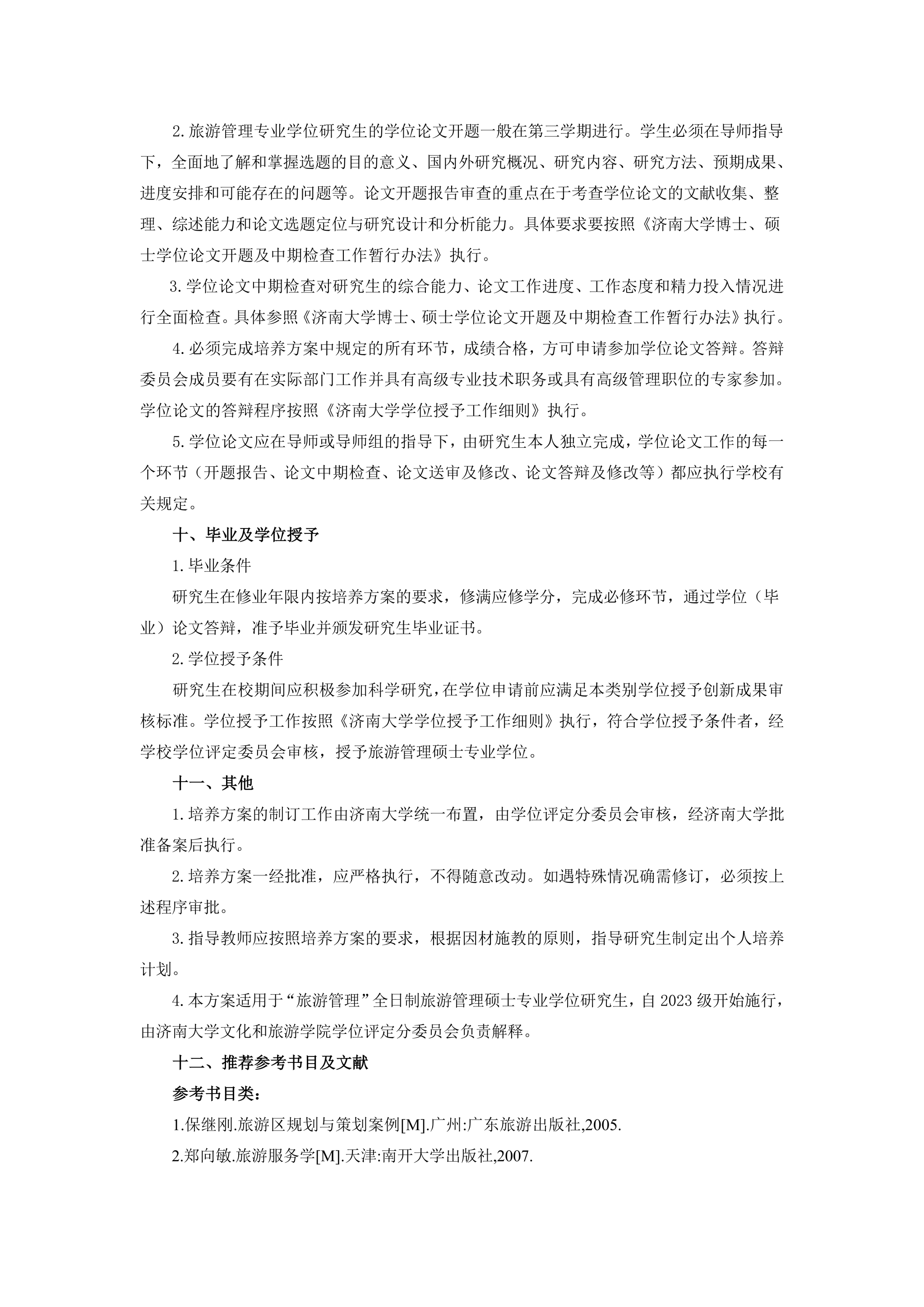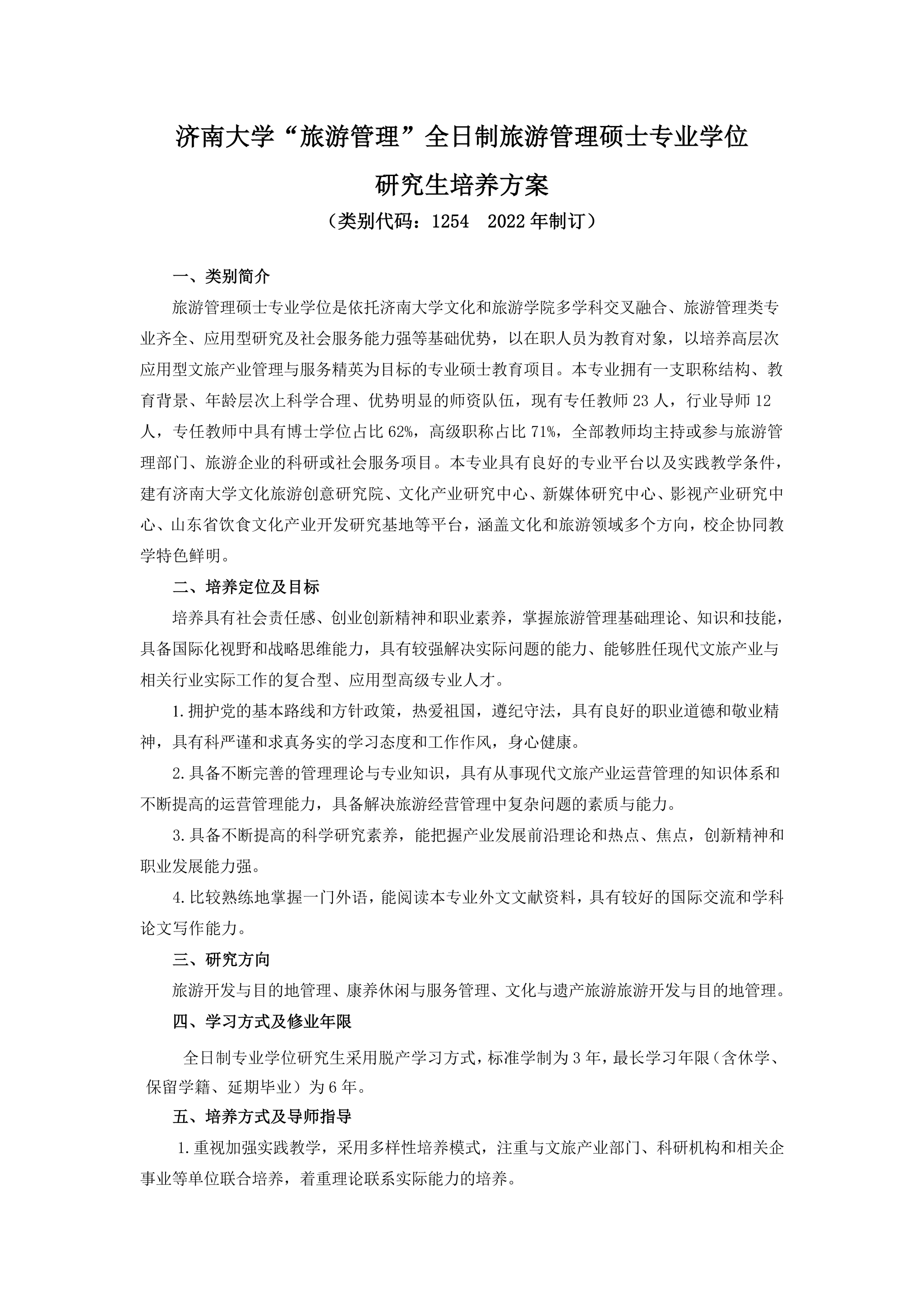 济南大学“旅游管理”旅游管理硕士专业学位 研究生培养方案