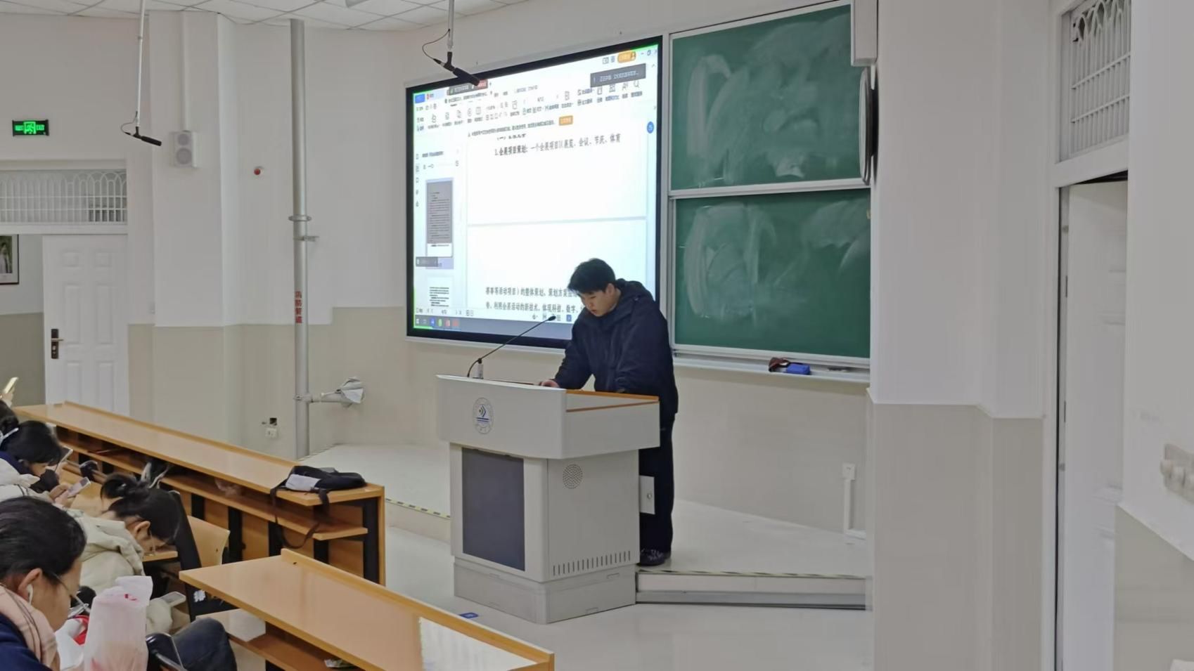本次活动由创新创业部荆浩宇同学主持。荆浩宇同学为同学们讲解全国高校商业精英挑战赛文旅与会展实践竞赛旅游新业态赛道(以下简称旅游新业态赛道)的赛事主旨,参赛主题、赛事要求、议程设置等。他根据最新文件,对旅游新业态赛道赛事时间安排、赛程安排、竞赛规则、作品要求进行介绍,增进同学们对赛事形式和赛事内容的了解。