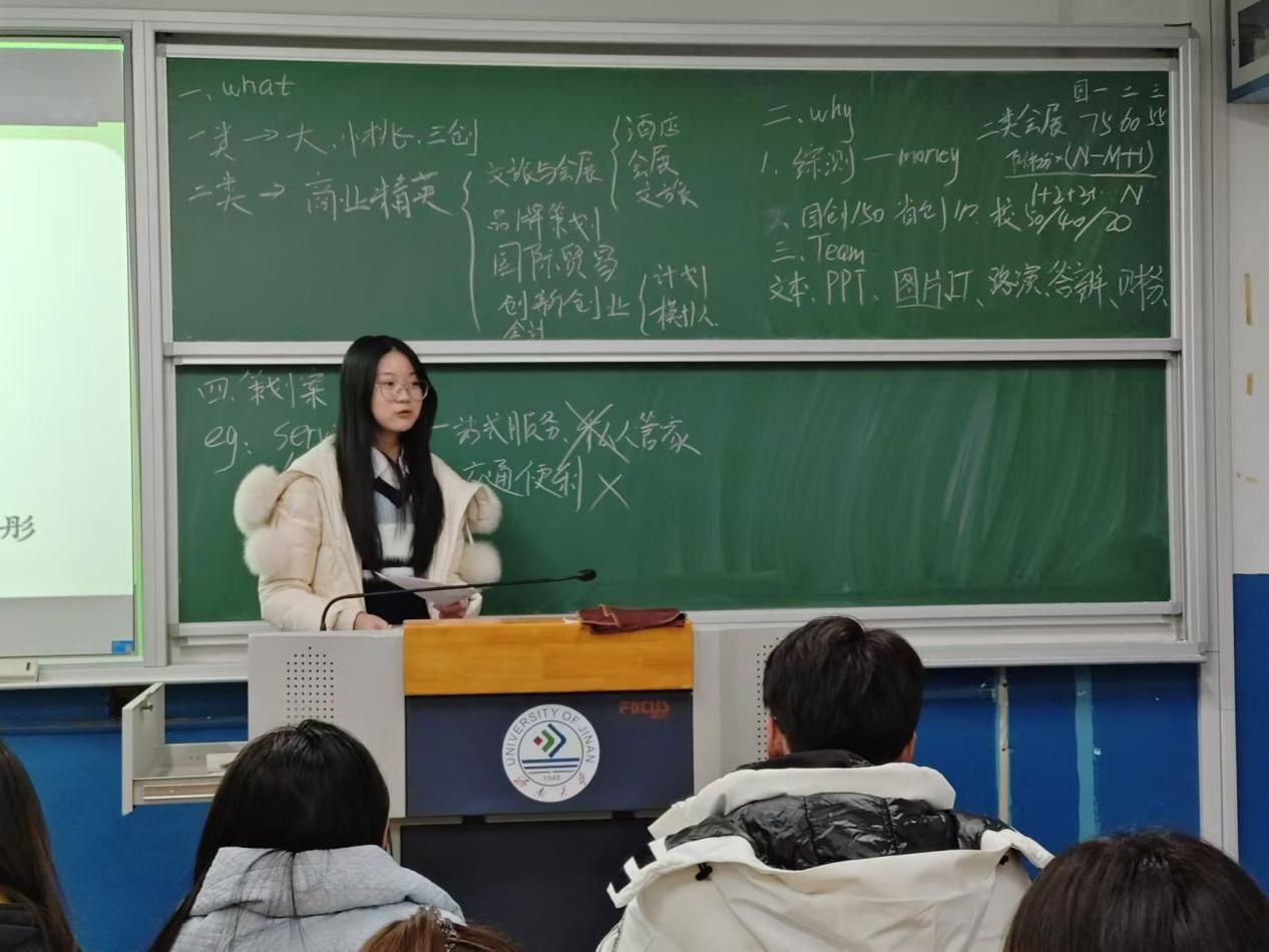 孙梦彤同学在创意与专业的结合基础上,分析市场趋势与竞争态势,帮助同学们快速了解参赛技巧。她给同学们提供宝贵的创作思路与实践范例从而为后续的作品制作注入强大的动力并提供方向指引。