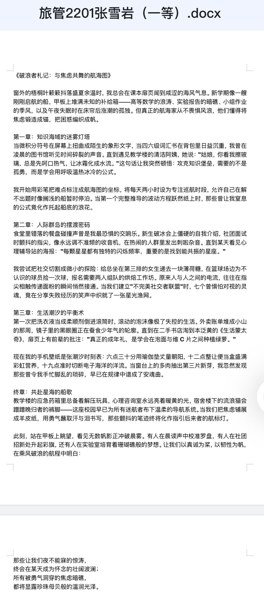 近日,Beat365唯一官方网站心理服务协会举办的 “文心旅梦,共赴新程” 征文活动顺利结束。此次活动旨在帮助同学们缓解新学期压力,激发学习动力,提升综合能力,增强信心与毅力,吸引了学院全体同学的积极参与。