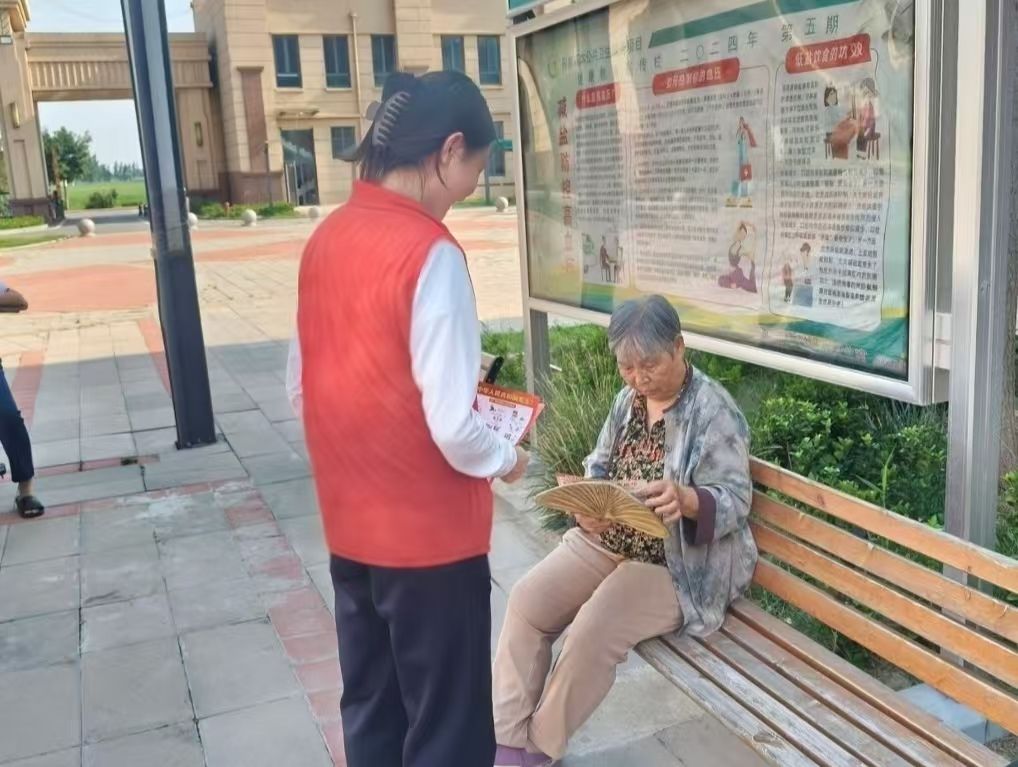 社区活动中心里,一场场 “健康课堂进万家” 活动正在热闹开展。团队成员们带着精心制作的PPT和短视频,围绕夏季高发的中暑、胃肠道疾病预防展开讲解。“大家知道中暑后不能立刻喝冰水吗?正确的做法是先移到阴凉处,补充淡盐水……”李雨薇边播放动画演示,边用通俗易懂的语言讲解应急处理步骤。针对老年人群体关注的高血压、糖尿病用药问题,队员们特意准备了图文并茂的手册。张红文涵手把手教老人识别药品说明书上的“禁忌项”,郭梦娇则用顺口溜总结出“定时定量、不擅自换药”等用药原则。课堂结束后,现场发放的自制《健康知识手册》成了居民们的“掌中宝”,科学的健康观念在互动交流中悄然传递,温暖了社区老人的心田。
