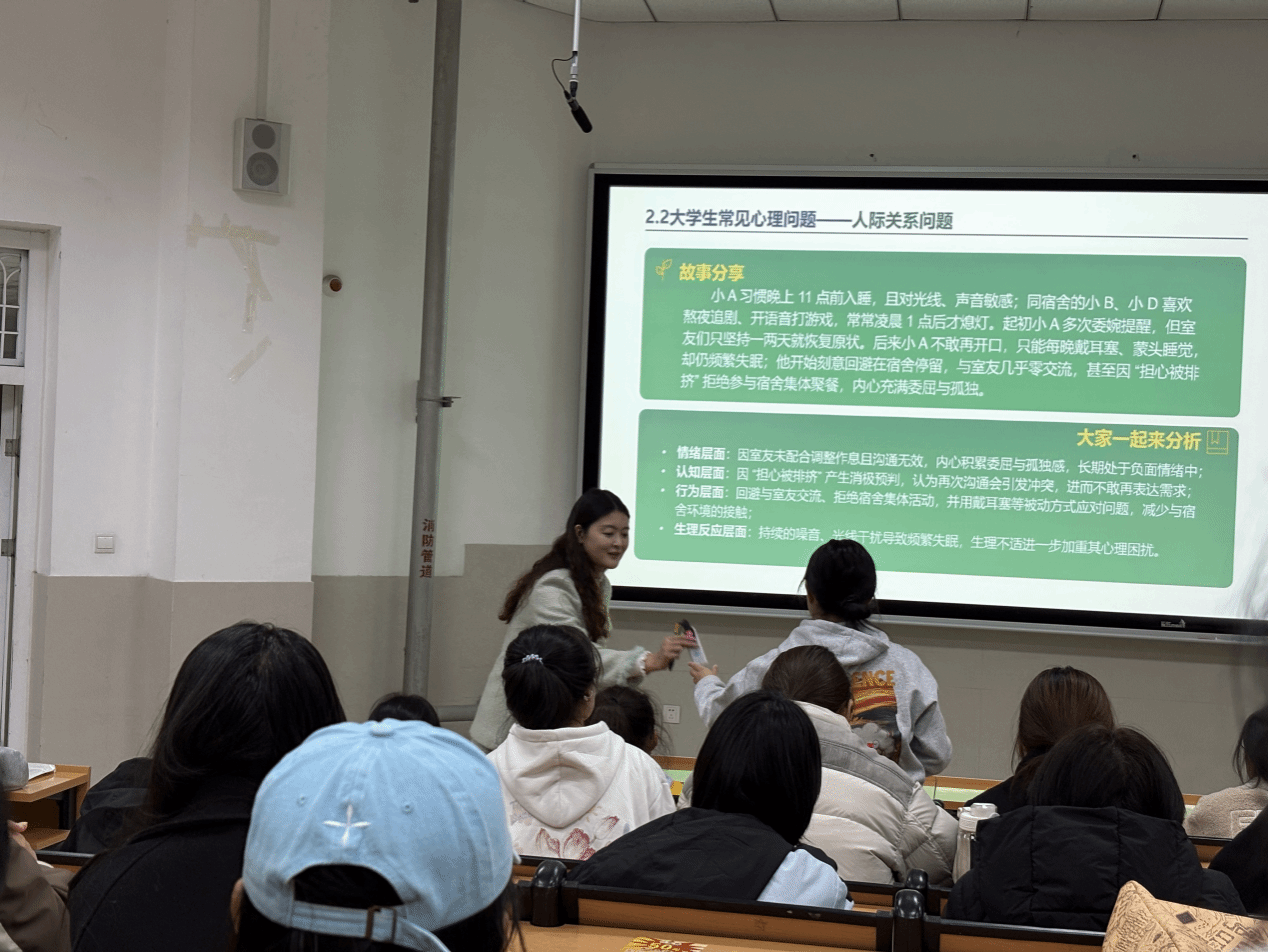 李可心紧扣新生成长发展需求,从心理健康的科学定义与核心标准切入,深刻阐释了心理健康作为新时代大学生综合素质重要组成部分的意义所在,强调其对个人成长、学业进步、全面发展的基础性作用。针对新生在环境适应、人际交往、学业压力、情绪调节等方面易出现的困惑与挑战,李可心既给出了针对性强、可操作的调适方法,又系统讲解了认知偏差矫正、心理危机早期识别等关键知识,同时详细介绍了学校心理咨询室、心理热线、团体辅导等专业资源的申请渠道与使用方式,引导新生树立 “主动关怀、科学调适、勇敢求助” 的心理健康理念,着力培养积极乐观的人生态度和坚韧不拔的心理品质。