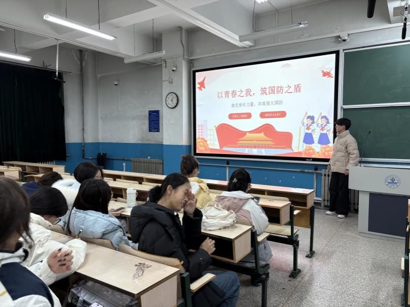 宣讲会伊始,何政轩以“青春与国防的紧密联系”为切入点,紧扣当前国际形势与国家安全需求,系统阐述了当代青年在国防建设中的角色定位与时代责任,明确青年是国防力量的后备军、科技强军的生力军、全民国防的宣传队,帮助同学们深刻理解了青年在国防建设中的重要性。