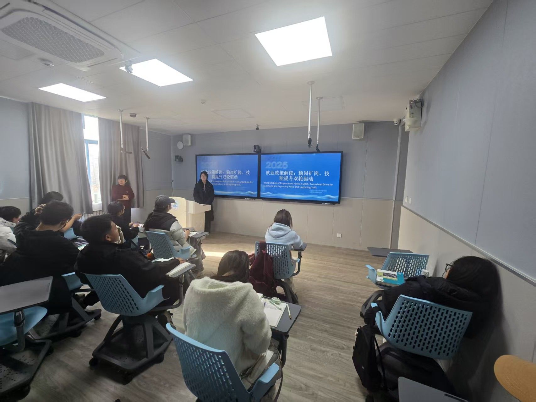 针对高校毕业生,重点解读了国家17条青年就业扶持政策,涵盖国企扩招延续至2026年底、“双千计划”及社保降费落实等举措,助力学生用好政策红利。