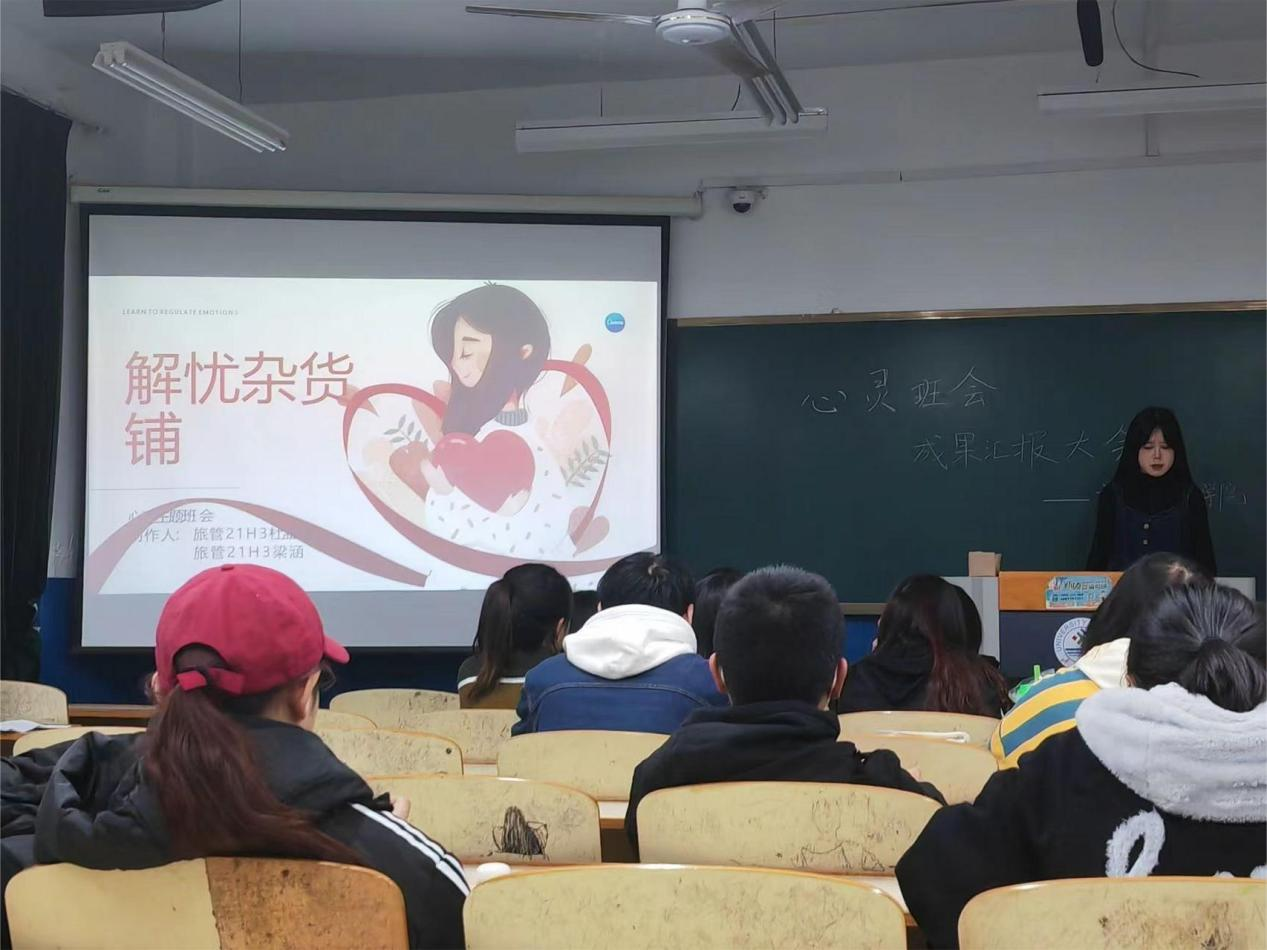 在心理主题班会PPT展示活动中,心灵使者们用精美的PPT将各班班会开展情况完整地展现给大家。各班PPT形式多样、特点鲜明,无论是清晰丰富的班会照片和视频,还是细腻温暖的建议及交流,都可见作为心灵使者的2021级学长学姐们对学弟学妹们的忠告和祝愿。