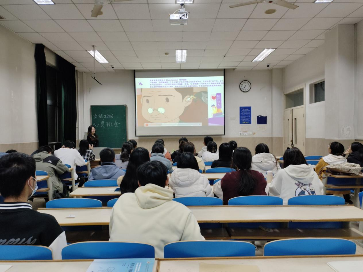 新生适应性心理主题班会在2021级心灵使者的带领下顺利召开。活动过程中,心灵使者们开展了书写心灵便利贴、张贴许愿树、观看心理电影视频、与同学们互动交流等多种活动,同学们也在活动过程中积极发言、全心投入、认真倾听。
