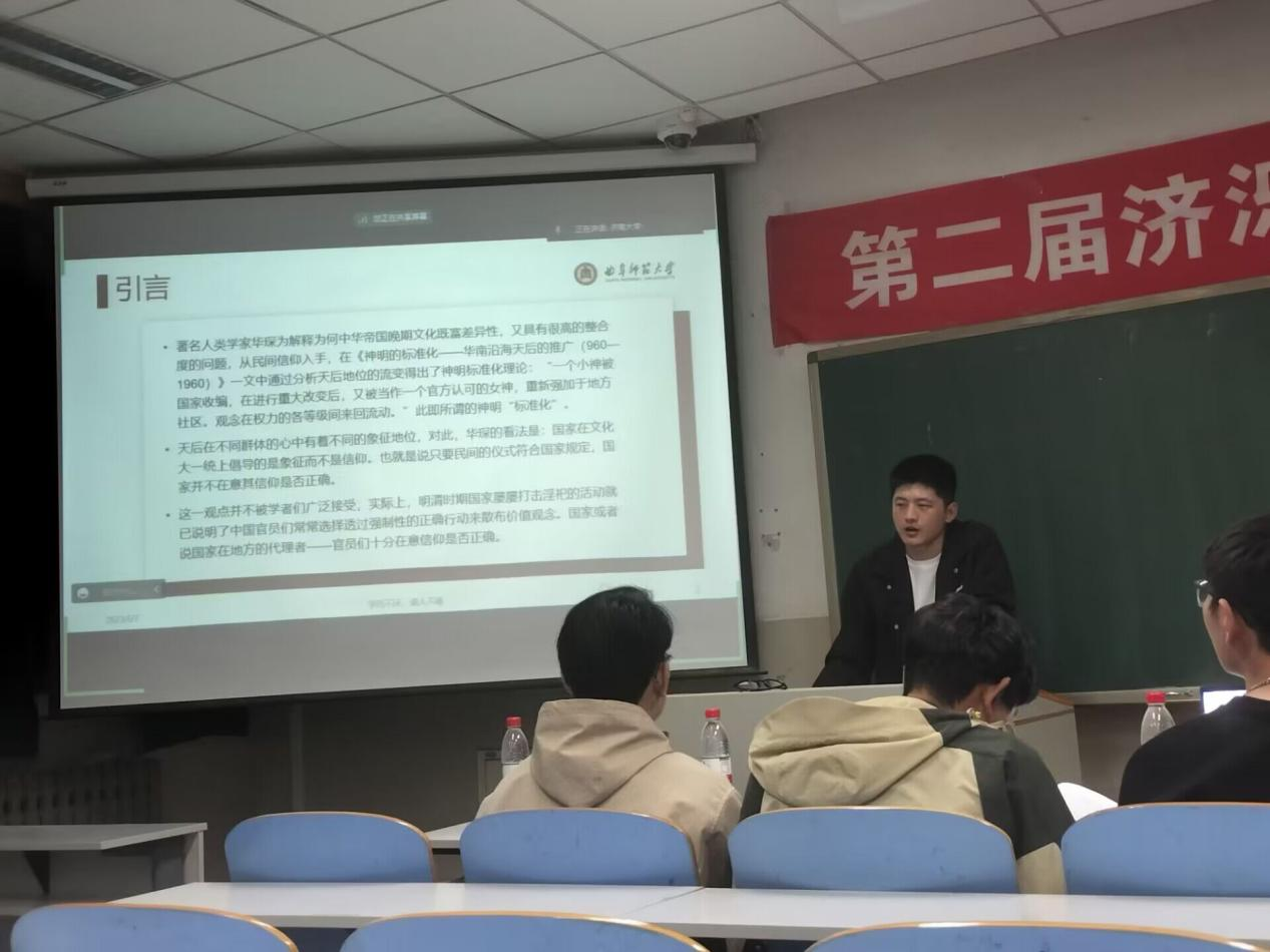 为拓宽同学们的历史视野、提升史学素养和能力,济南大学博雅历史协会于2023年5月7日在济南大学主校区举办了第二届济泺·洙泗史学论坛活动。本届论坛由济南大学博雅历史文化协会和曲阜师范大学史苑学社联合举办,采用线上线下相结合的方式进行。