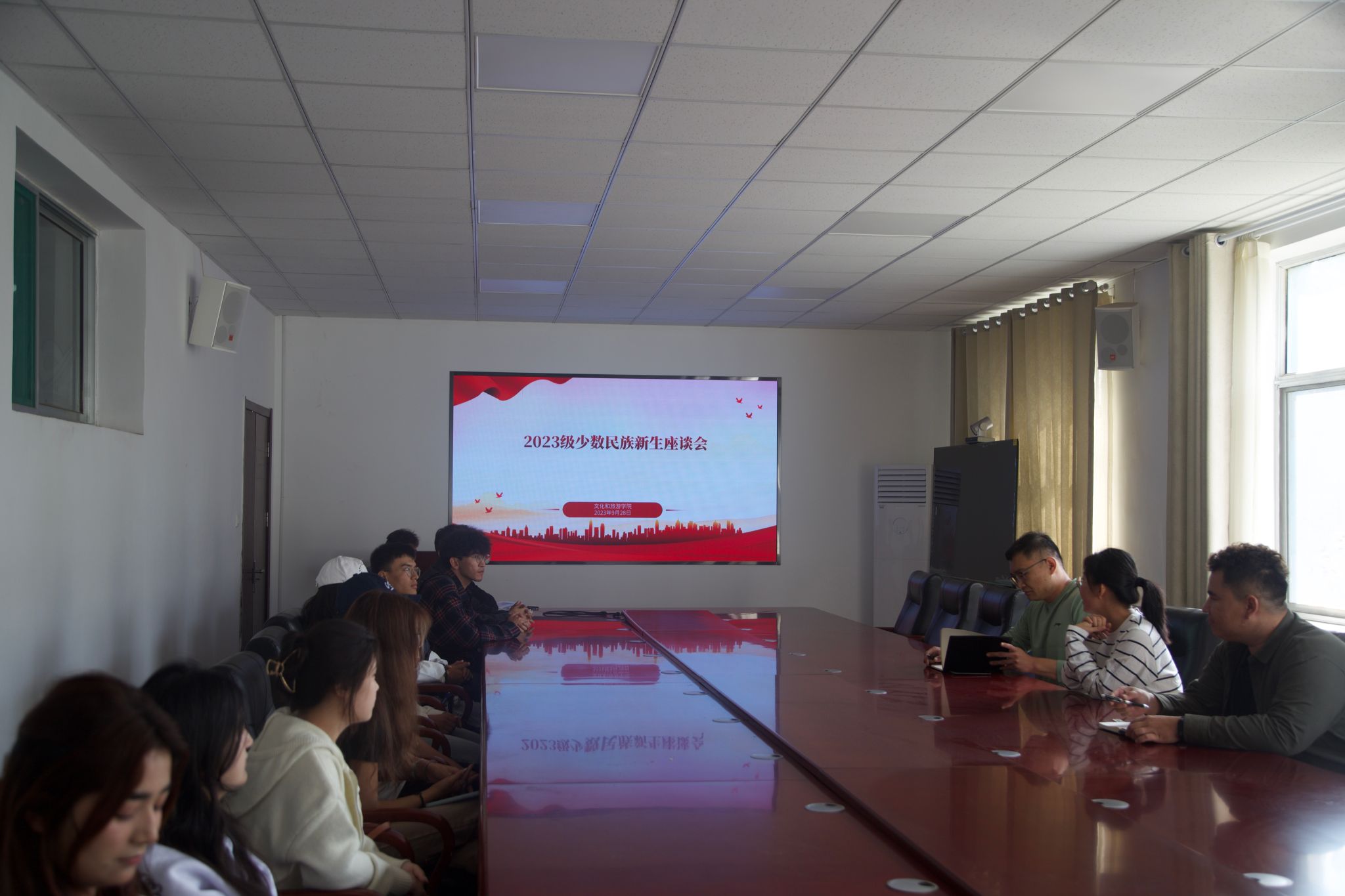 为进一步了解2023级新疆籍少数民族学生的生活、学习和思想动态,促进少数民族学生更好适应大学生活,进一步加强与学生的沟通和交流,做好学生服务与管理工作。9月28日上午,学院在文旅楼212会议室召开2023级新疆籍少数民族新生座谈会。学院学生工作管理办公室主任崔艺馨、学校少数民族专职辅导员买尔当·坎买尔、2023级辅导员老师以及12名新疆籍少数民族学生参加本次座谈会。