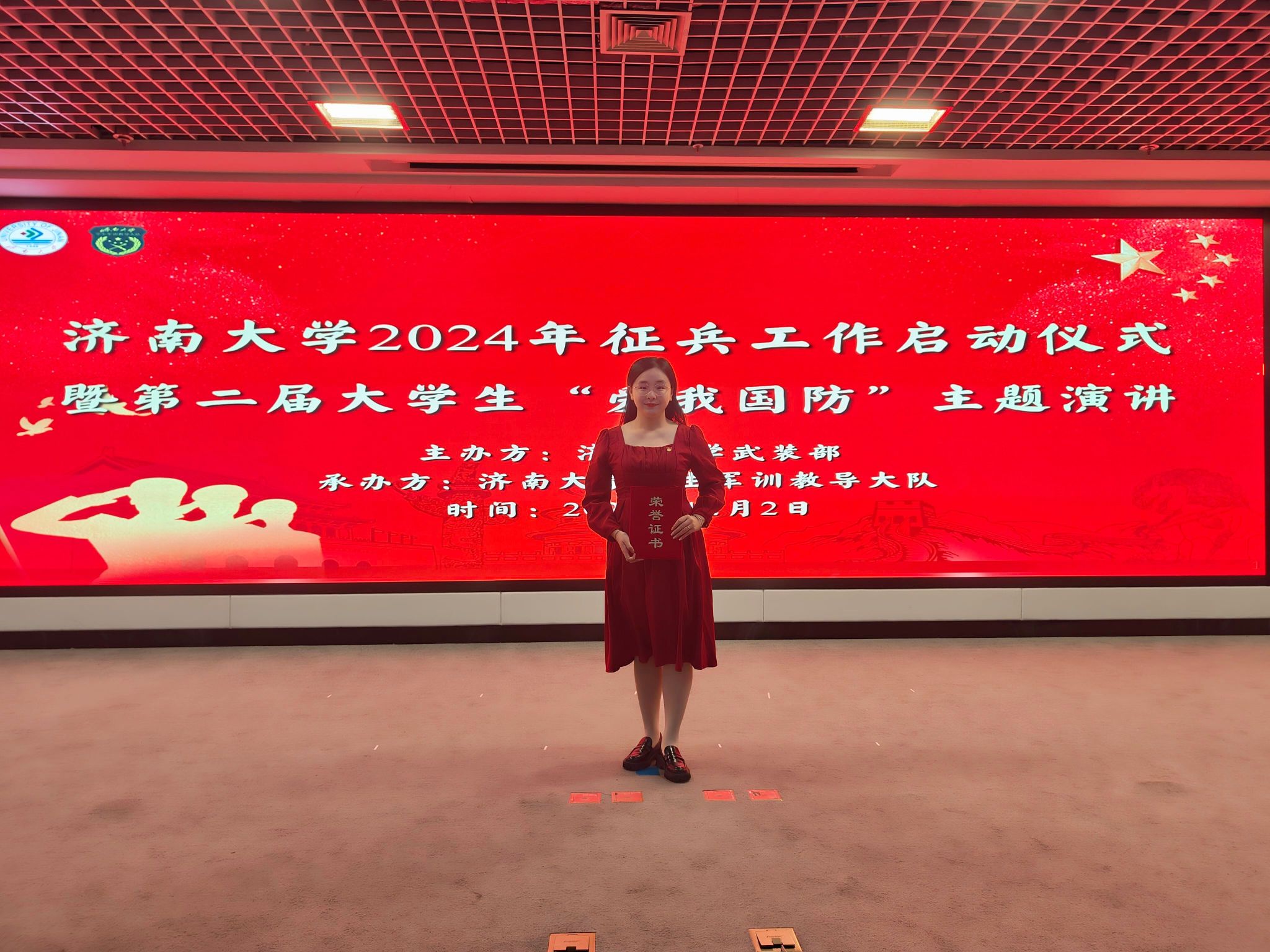 为进一步增强大学生国家安全意识和国防观念,引领学生关心和投身国防建设,激发民族自豪感和国家荣誉感,涵养爱国爱党爱军情怀,2023年12月2日,济南大学第二届“爱我国防”大学生主题演讲比赛圆满落幕。经过激烈角逐,Beat365官网牛家华同学在比赛中脱颖而出,荣获一等奖的好成绩。