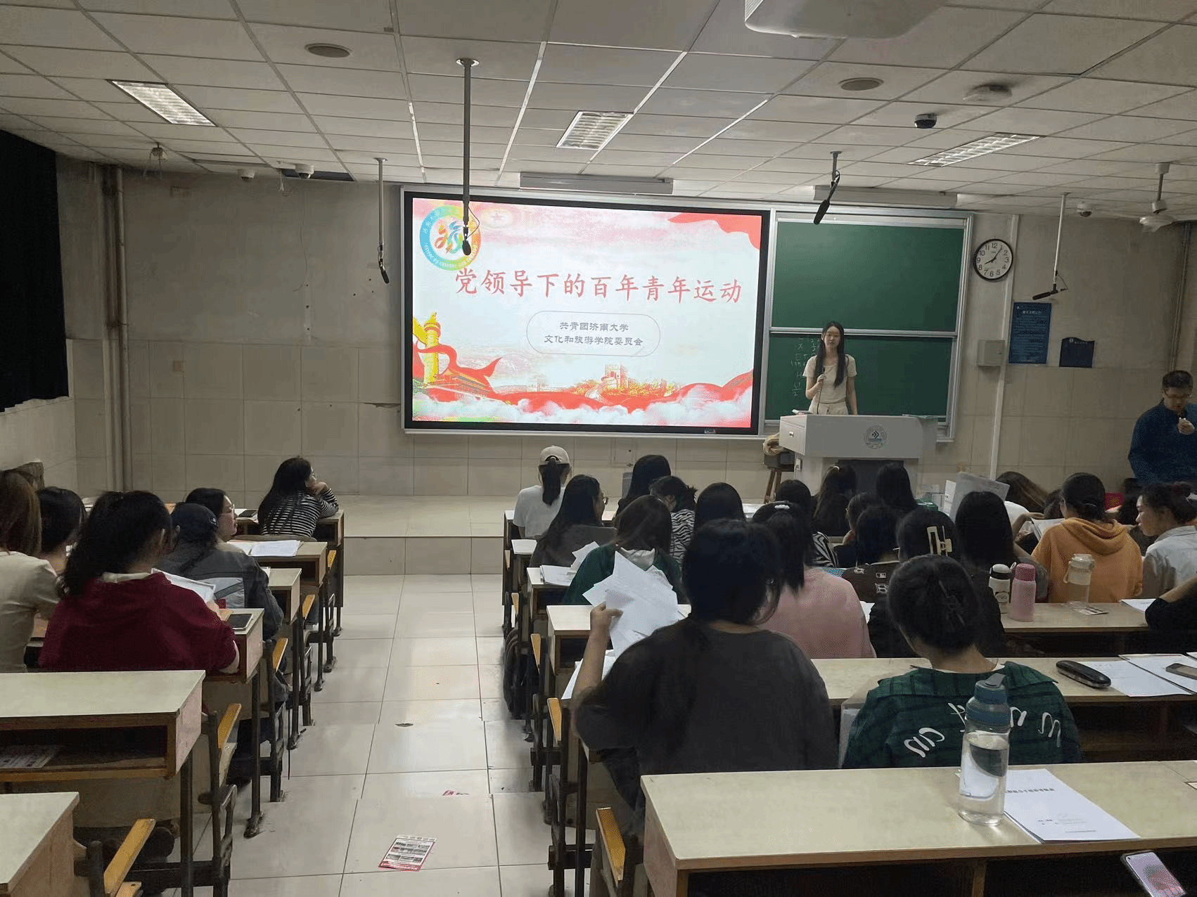 活动伊始,主持人通过播放和讲解PPT的形式为同学们详细介绍了此次团日活动的主题,有利于加深同学们对“强国复兴有我 青春筑梦未来 ”主题的理解。然后,播放视频介绍焦裕禄精神、红旗渠精神、大别山精神等河南丰富的红色教育资源,开展国情教育、成就教育、形势政策教育,让同学们潜移默化接受教育、增进认同。最后,向同学们介绍即将开展的社会实践,如“我为同学做实事”等志愿服务、实习见习实践活动,有利于引导团员和青年在奉献社会、服务群众中锤炼思想、锻炼成长。