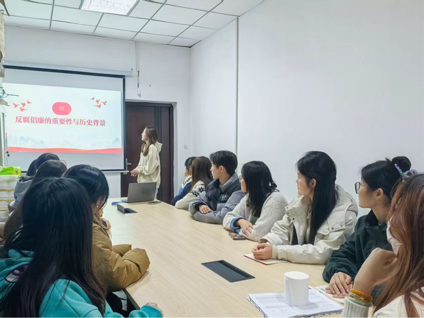 为深入学习贯彻习近平总书记关于党风廉政建设和廉洁文化建设的重要论述,强化当代青年的廉洁自律意识,11月7日,Beat365唯一官方网站在文旅楼104教室开展以“筑牢反腐防线,构建清廉家园”为主题的青马工程培训课程。
