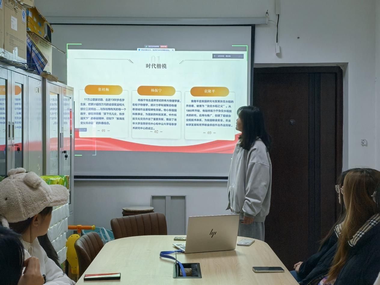 课程中,主讲人详细介绍了张桂梅、杨振宁、袁隆平等时代楷模的先进事迹。从张桂梅“膝下无儿女,桃李遍天下”的奉献精神,到杨振宁先生跨世纪的伟大物理成就及心系祖国科教事业的爱国情怀,再到袁隆平院士为我国粮食安全作出的杰出贡献,每一个事迹都让人深受感动,倍感鼓舞。她表示,这些时代楷模的事迹不仅是个人奋斗的缩影,更是民族精神的体现,他们的精神品质值得每一个青年学子学习。