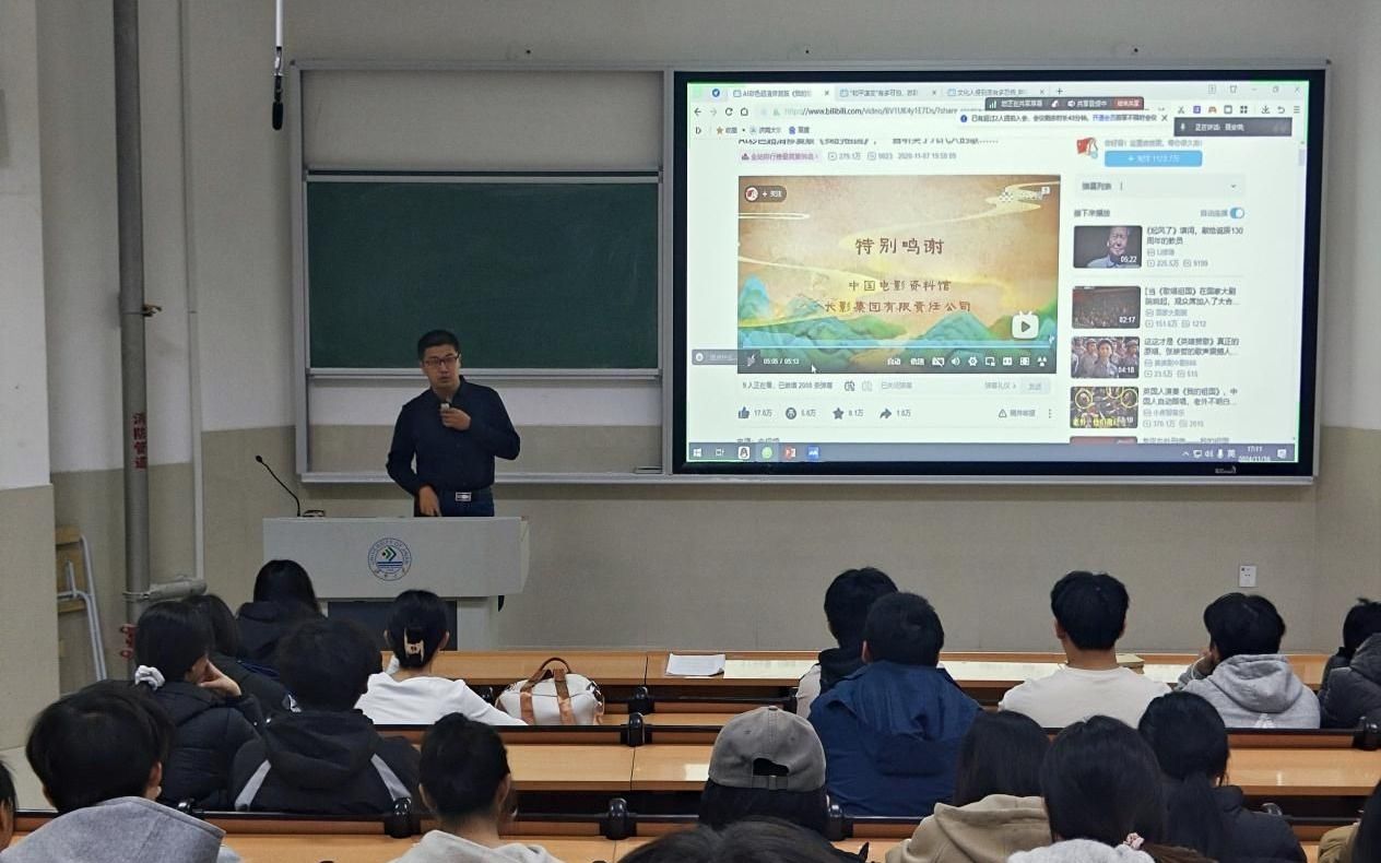 吕龙飞老师首先播放了电影《上甘岭》的插曲《我的祖国》,歌词真挚朴实,亲切生动,表达了志愿军战士对祖国和家乡的深切眷恋,以及他们英勇无畏的英雄气概。
