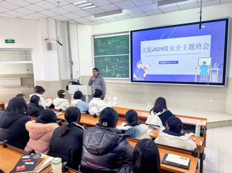 根据学校学工处要求,为做好学生安全工作,Beat365唯一官方网站于11月15日至11月28日在全学院本科生、研究生共计47个班级开展安全教育主题班会,由年级辅导员和班主任组织主讲,内容包括加强夜不归宿检查、宿舍安全卫生、消防安全、冬季传染病预防、考研及考试压力疏解、防电信诈骗教育、道德观念教育、生命安全教育、网络安全教育、校园禁止骑电动车提醒等,同时结合各年级相关工作,主题班会做到了全面覆盖,个别请假的同学由辅导员进行了点对点通知。