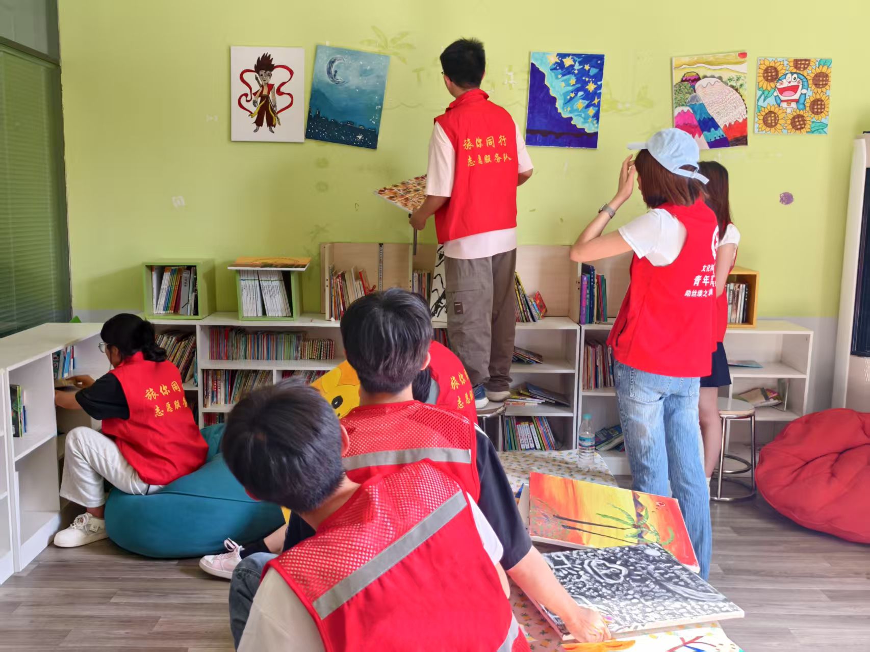 为给孩子们打造一个温馨舒适的生活空间,志愿者们化身创意设计师,用匠心与热情装点每一寸角落。他们深入了解孩子们的喜好与需求,精心设计装饰方案,让艺术与温暖在空间中交融。粉刷墙壁的志愿者,手持颜料刷,以柔和的色彩为墙面披上梦幻的外衣,覆盖掉岁月留下的斑驳痕迹;负责装饰布置的志愿者,则将亲手制作的手工挂饰、充满回忆的照片墙巧妙地装点在房间各处。当新的灯具亮起,绿植在角落舒展身姿,原本单调的房间瞬间焕发出勃勃生机,仿佛变成了充满童话色彩的温馨天地,每一处细节都诉说着爱与关怀。