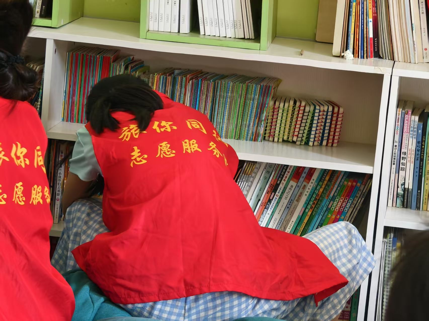 志愿者们投身于书籍整理工作中,宛如在知识的星河中点亮一盏盏明灯。面对杂乱堆放的书籍,他们化身分类能手,将教材、课外读物、杂志等逐一梳理归位。那些因岁月流逝而破损的书籍,在志愿者们的巧手下重焕生机。胶水与胶带化作神奇的画笔,修补的不仅是书页的裂痕,更是守护着每本书籍承载的珍贵记忆。正如志愿者郁菀茹所言:“每一本书都承载着独特的故事,我们整理的不仅是书籍,更是在呵护孩子们心中的温暖回忆。”整理完毕后,整齐排列的书架宛如知识的殿堂,静静等待着孩子们开启探索的旅程。