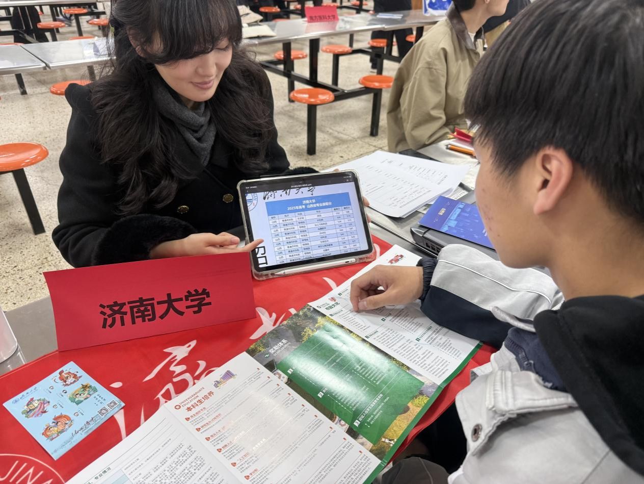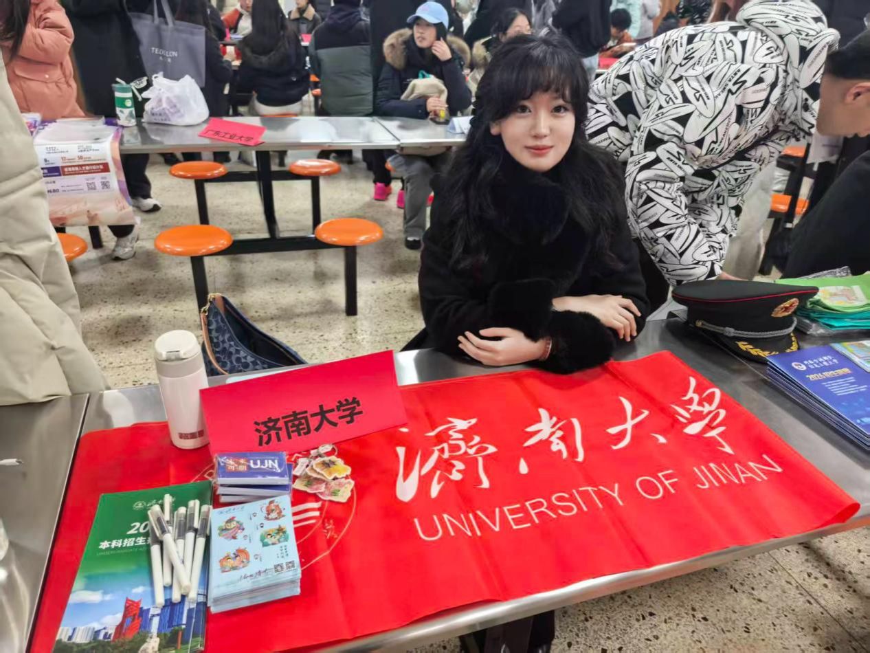 从站上讲台到守候咨询展位,这一程既是知识的传递,也是自我的成长。初登讲台时的忐忑在学弟学妹的目光中消散,侯姝君的语言表达和临场应变能力不断提升。为了让宣讲内容更贴合需求,她反复打磨PPT、核对招生数据,锤炼了组织协调与信息整合能力;一对一交流则让她学会了换位思考,让沟通多了一份共情。在介绍济南大学的过程中,她对母校的认同感愈发浓烈,也更加清晰地懂得了作为济大学子的责任与荣光。