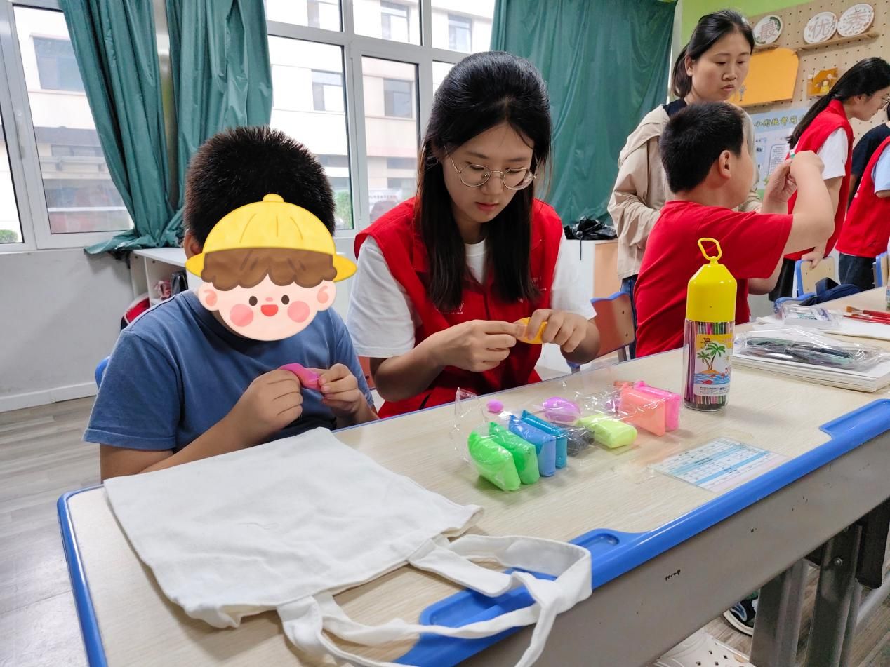 在本次活动中,志愿服务团队充分运用项目组发放的物资包,与孤独症儿童共同参与了丰富多彩的活动。他们一起参与趣味游戏,通过游戏增进了解与信任;在手工制作环节,孩子们在志愿者的指导下,亲手制作泥人、绘画并装饰油彩帆布包,展现了他们的创造力和艺术天赋。这些活动不仅激发了孩子们的兴趣爱好,也提升了他们的动手能力和艺术修养。志愿服务团队还向孩子们宣讲了中国传统文化的故事,包括传统节日、民间传说以及非物质文化遗产等方面的知识。通过生动的讲述和互动,孩子们对中国传统文化的认识得到了深化,同时也感受到了中华文化的博大精深和独特魅力。
